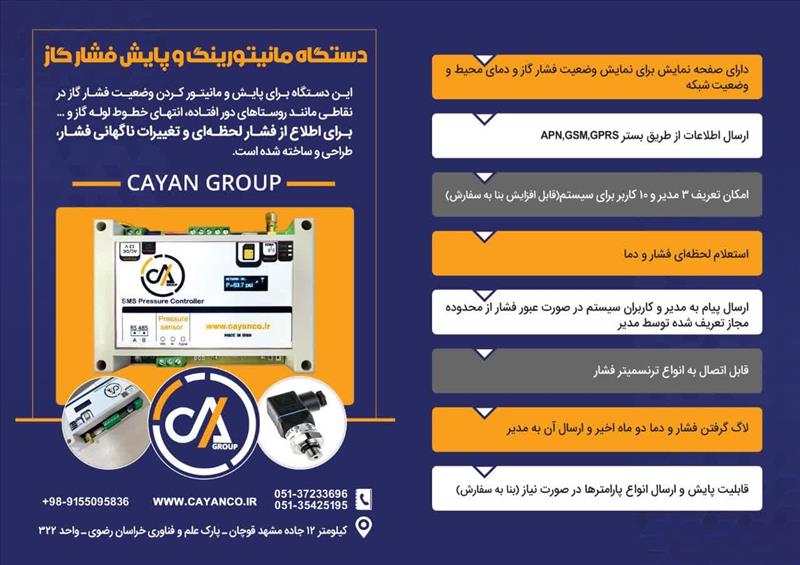 • ساخت دستگاه مانیتورینگ و پایش فشار گاز توسط واحدفناور پارس سایان الکترونیک توس